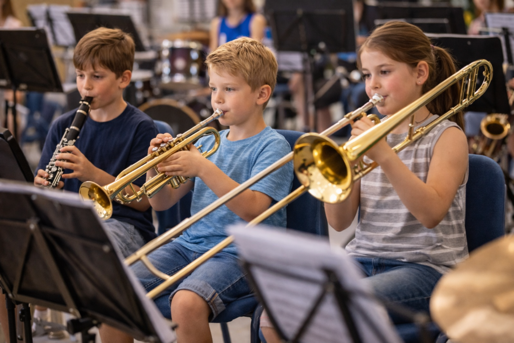 Unsere Jugendarbeit begleitet Kinder und Jugendliche Schritt für Schritt auf ihrem musikalischen Weg – von den ersten Klängen bis zum gemeinsamen Musizieren im Orchester. Dabei stehen Freude an der Musik, Gemeinschaft und die persönliche Entwicklung im Mittelpunkt. In einem klar aufgebauten Ausbildungskonzept mit sechs aufeinander aufbauenden Stufen wächst musikalisches Können ganz natürlich – ohne Druck, aber mit viel Begeisterung.